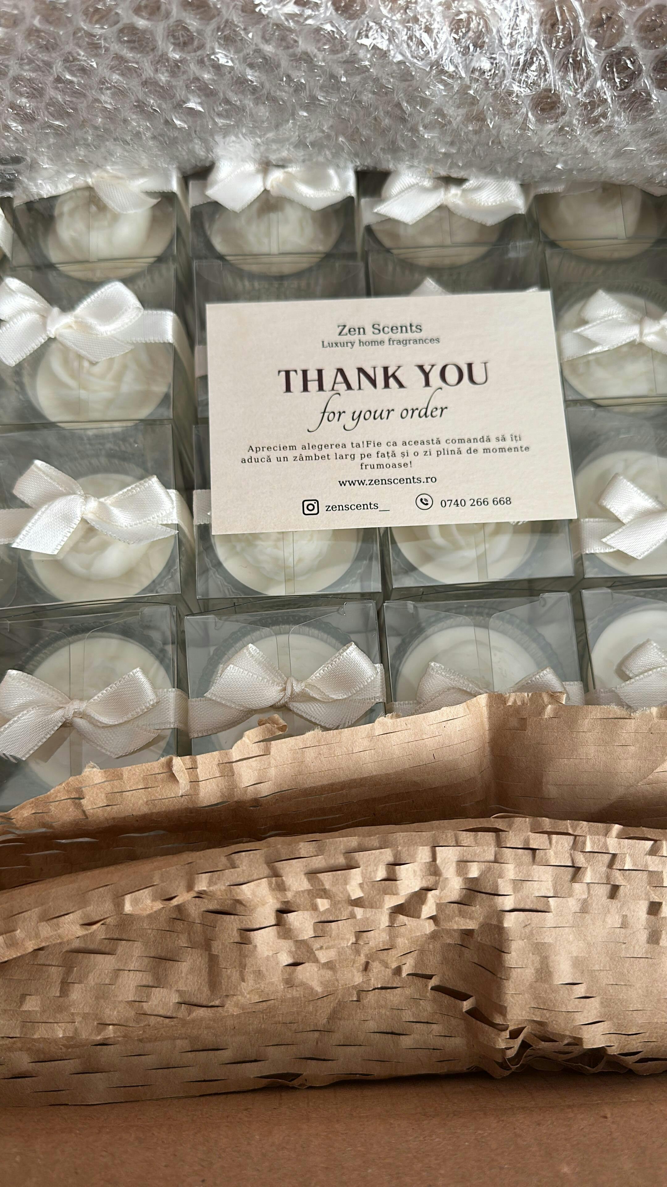 Aceste mărturii au fost alegerea noastră pentru nuntă și mă bucur mult că am ales Zen Scents. Lumânările miros incredibil și au venit împachetate superb. Am avut o comunicare minunată cu echipa, au fost extrem de receptivi la orice detaliu menționat. Mulțumim!